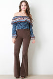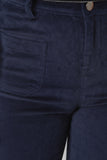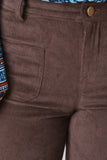 These pants are vintage style with a bell bottom flare cut. Features belt loops, two front and back pockets, and single button zipper fly closure. Mid rise design. Vegan suede stretch fabrication. Accessories sold separately. Self: 3% Spandex, 97% Cotton.