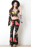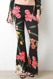 These pants features a bell bottom flare, elasticized waist, and floral print. Accessory sold separately. 95% Polyester, 5% Spandex.