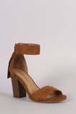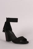 Breckelle Suede Tassel Ankle Cuff Open Toe Chunky Heel