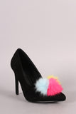 Multi Colored Pom Pom Suede Pointed Toe Heels